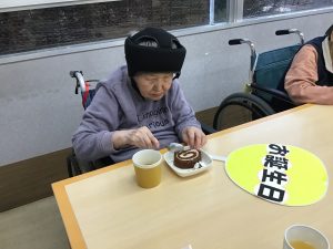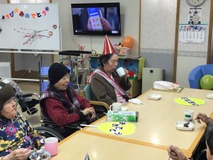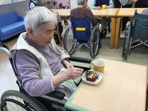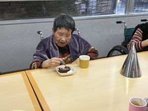 誕生日会後編です 皆さんでロールケーキを食べました。